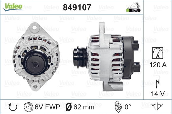 Valeo Alternator 849107 Fiat Doblo 263 Van / 1.6 D Multijet