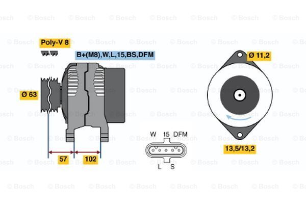 Developed and tested for very reliable energy supply to a vehicle's electrical onboard system in even the most adverse conditions: The Bosch alternator is adapted to the vehicle specific electrical demands and designed to be identical in fit and performance to an original equipment alternator.