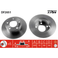 TRW Brake Disc Rotor Pair DF2651S