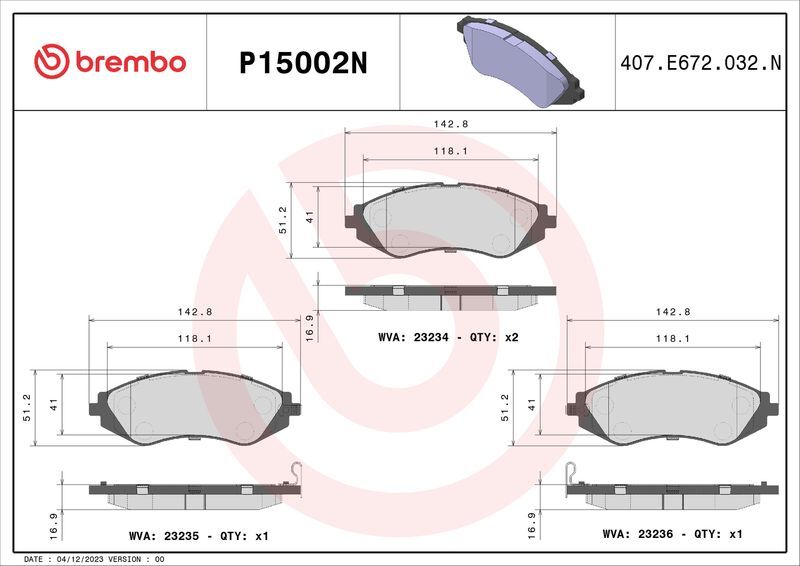 Brembo Front Brake Pads Set P15002N