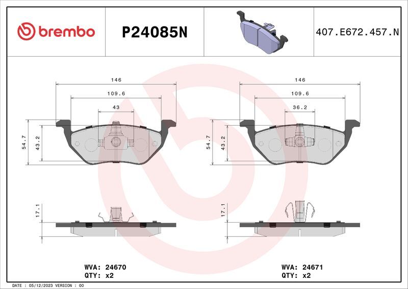 Brembo Rear Brake Pads Set P24085N