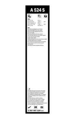 Genuine Bosch Set Of Wiper Blades A524S