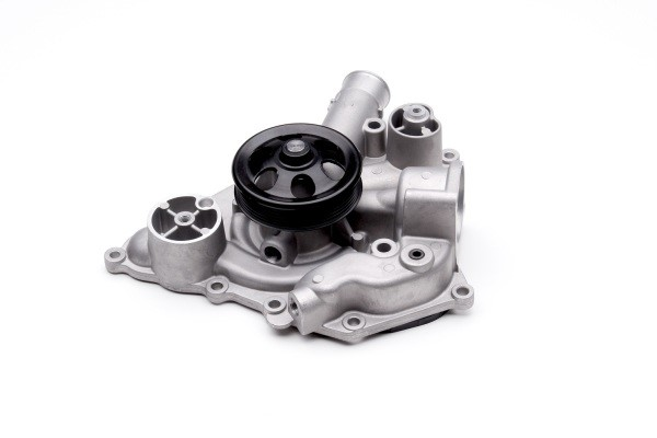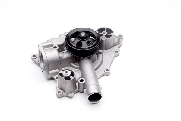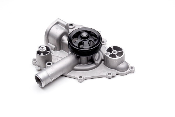 A water pump in a car is an essential component of the engine cooling system. It is responsible for circulating coolant through the engine to remove excess heat and maintain the optimal operating temperature of the engine. A water pump is typically belt-driven and consists of an impeller, housing, and bearings. The impeller, which is attached to the shaft of the water pump, creates centrifugal force, drawing coolant from the radiator and propelling it through the engine. The housing of the water pump encases the impeller and coolant fluid, while the bearings support the shaft, allowing it to rotate freely.